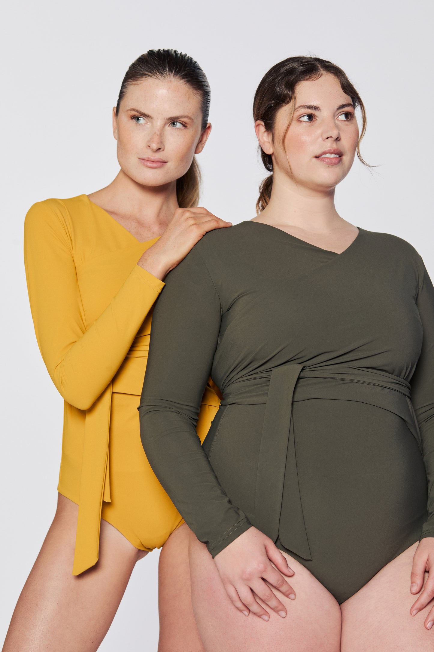 Inspired by the ancient Roman goddess, our Aurora one-piece UV protective swimsuit carries a distinctly romantic touch. Two panels are gracefully wrapped around the body and tied at the side, allowing for an adjustable fit. Whether worn looser or more snug, Aurora is designed to flatter different body types, helping every woman feel both comfortable and confident.
